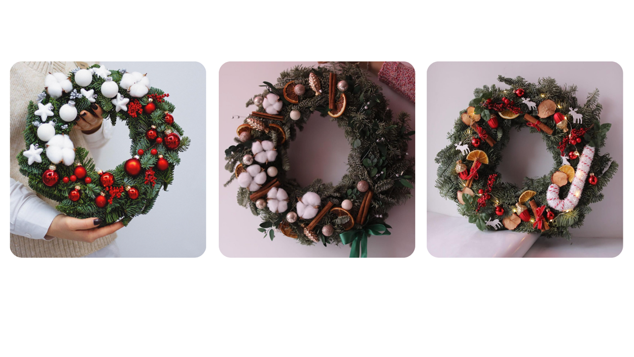 Деталі створюють настрій: святкова ялинка, гірлянди на вікнах, колядки. Сьогодні ми пропонуємо ще підсилити передчуття свята і виготовити своїми руками різдвяний віночок. Його можна розмістити на вхідних дверях чи над каміном або вбудь-якому іншому місці. А ще такий саморобний віночок стане гарним подарунком, якщо ви зібралися в гості.